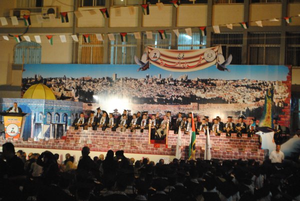 ويظهر في يمين الصورة والد الخريج أ. سمير سليم الأغا