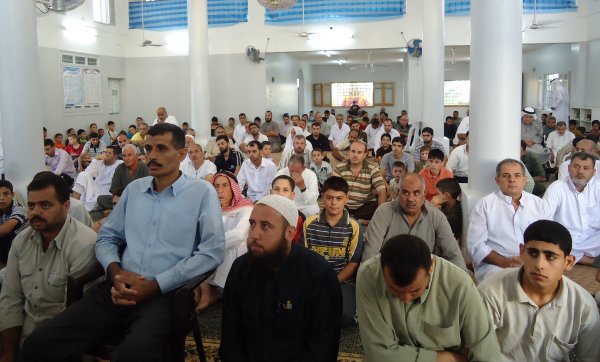 جانب من الحضور أثناء الإستماع لخطبة العيد