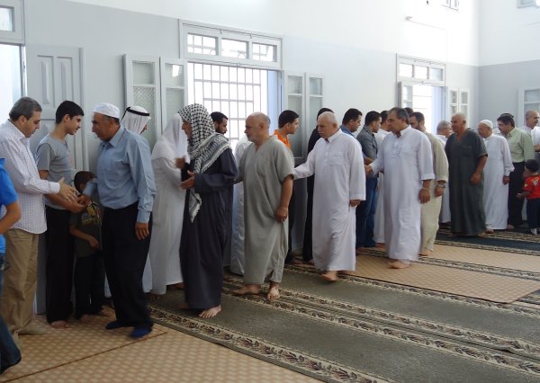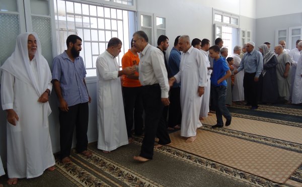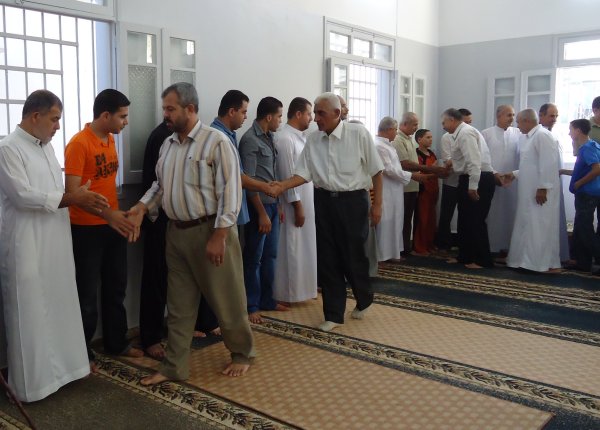 جانب من الحضور والمصافحة داخل المسجد إحتفالاً بالعيد
