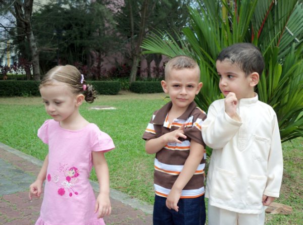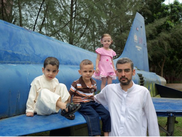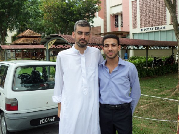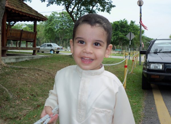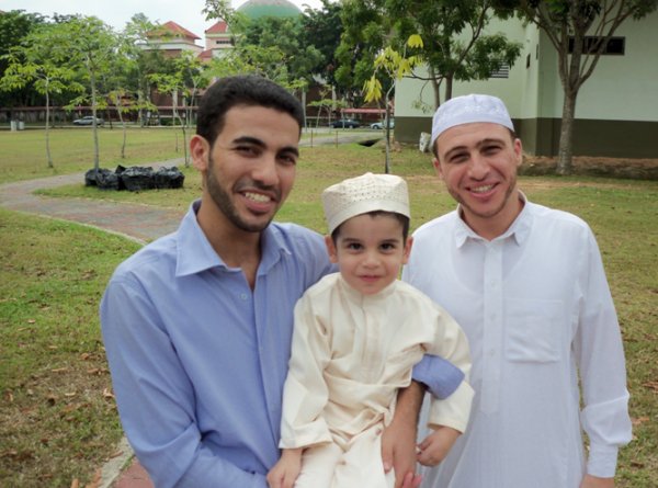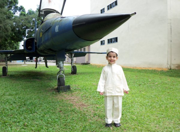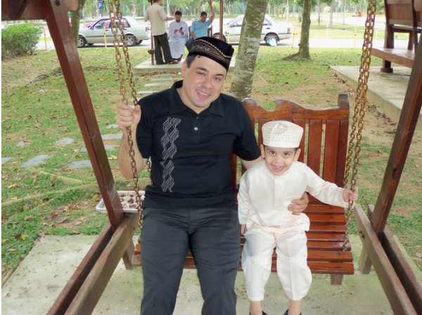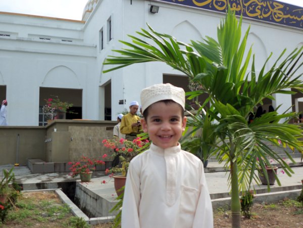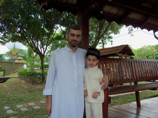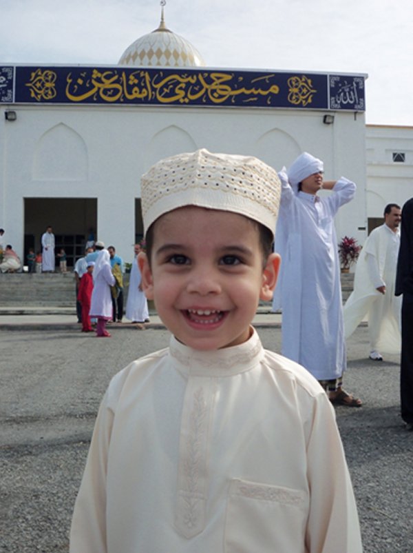سليم في ساحة المسجد يرتدي الزي التقليدي الماليزي