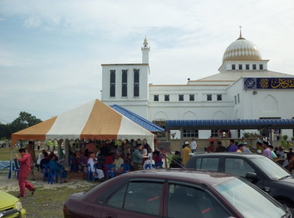 وجبات وطعام في ساحة المسجد بعد الصلاة