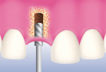الخطوة الأولى هي عملية غرز قطعة اسطوانية من التايتانيوم في عظم الفك. تترك هذه
