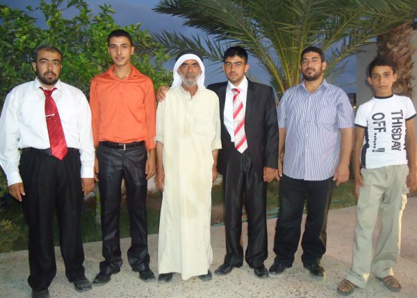 سعيد(أخ العريس)، أ. معاذ(شقيق العريس)، أ. توفيق جبارة وشقيقه رائد وابنيه محمد ويامن،