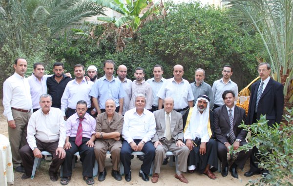 السادة الواقفون: أ. غسان عبدالله الأغا، م. عمرو صلاح الأغا، أ. حمدان نايف الأغا، م. عماد خالد الأغا،