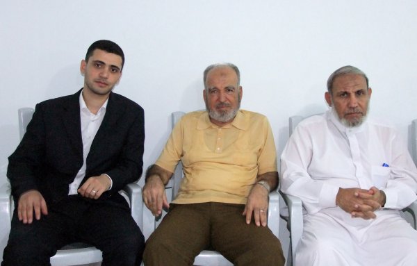 السادة: يونس خميس الأغا، الوزير أ. د. محمد رمضان الأغا، د. محمود الزهار(زوج شقيقة م. أحمد)،