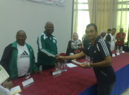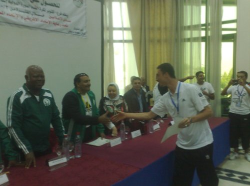 يظهر في الصورة ك/ نبيل الاغا . اثناء تسليمه للرخصة الدولية للمدربين