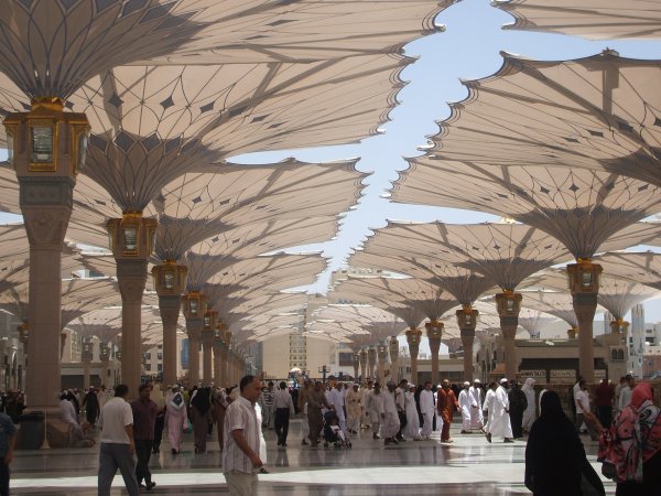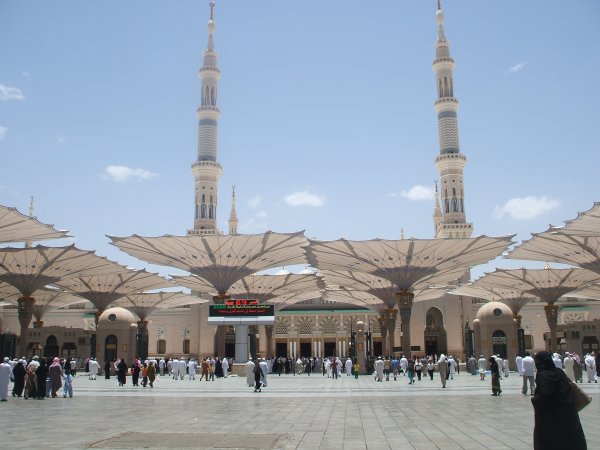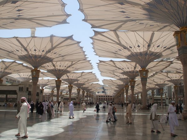 المظلات من أمام بوابات المسجد النبوي الشريف