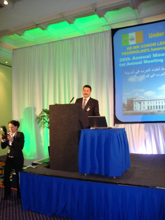 ترأس الدكتور غسان خليل الاغا رئيس اتحاد الاطباء العرب في ايرلندا و ممثل الاطباء الاوروبيين العرب في الامم المتحدة مع صديقه و نائبه الدكتور الفاضل خليل اكي المؤتمر السادس و العشرين لاتحاد الاطباء العرب في اوروبا و المؤتمر الاول للاطباء العرب في ايرلندا و الذي عقد في دبلن ايرلندا مؤخرا و حضره معالي وزير العلوم و التكنلوجيا السيد كونور لينيهان ممثلا عن الحكومه في ايرلندا اضافه الي السفراء العرب المعتمدين في دبلن و لندن و كذلك الملحق الصحي بسفارة دولة الامارات العربية المتحدة في بريطانيا ممثلا عن معالي وزير الصحة حنيف علي حسن و عدد من الشخصيات الهامة .