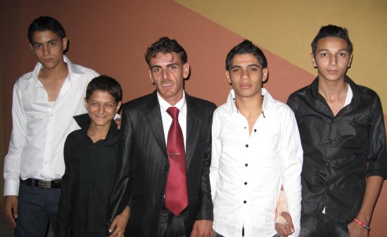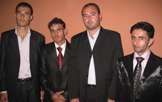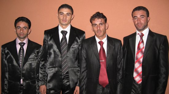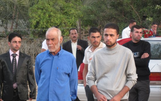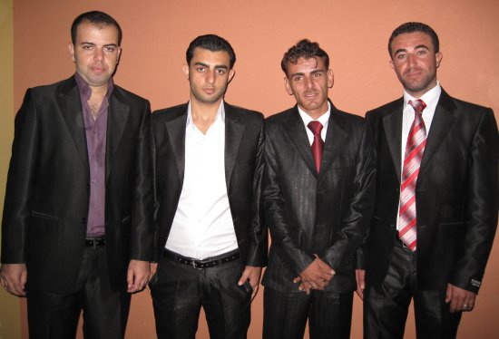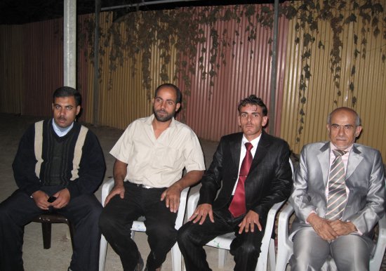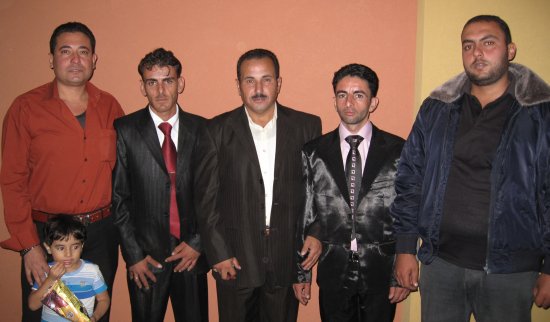 أحمد مصطفى، والد العريس، صالح إبراهيم، يظهر في الخلف بسام الأغا ابن خال العريس ،