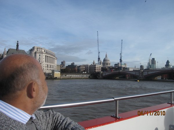 لندن العاصمة – رحلة نهرية في نهر التايمز وفي الخلف لندن آي " عين لندن "