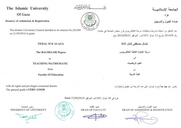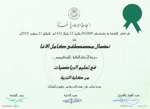 تخرج الطالبة نضال مصطفى كامل الأغا وحصولها على درجة البكالوريوس