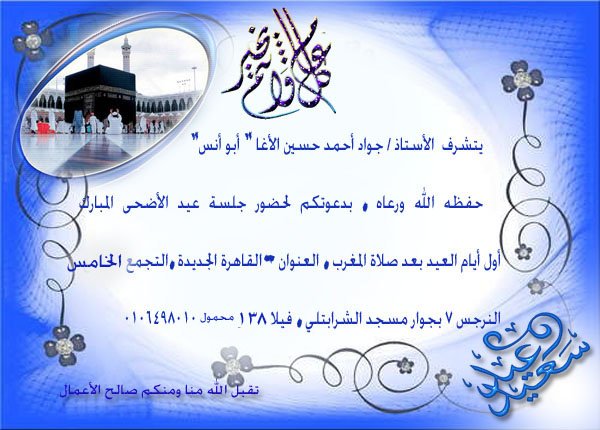 الرئيسة/أعياد/دعوة لحضور جلسة عيد الأضحى- القاهرة 2010 أعياد دعوة لحضور جلسة عيد الأضحى- القاهرة 2010 تاريخ النشر : الإثنين | 15-11-2010 | 15:20 9732 اضغط هنا للتعرف على المرحوم أ. جواد أحمد حسين الأغا يمكنك تلقي أحدث الأخبار أول بأول بانضمامك لإحدى مجموعات الواتساب الخاصة بالعائلة من خلال الضغط هنـا اظهر المزيد