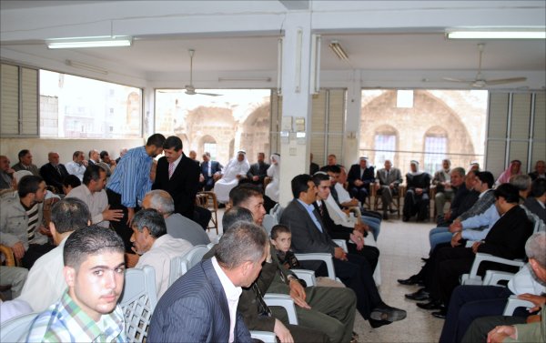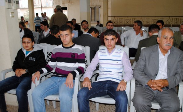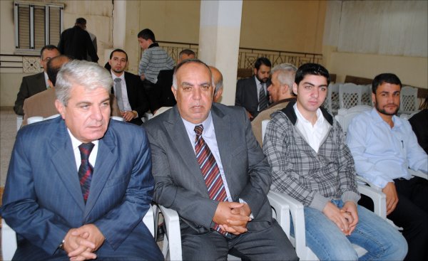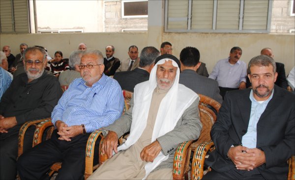 السادة: الحاج كامل حافظ الأغا، أ. عصام مهدي الأغا متحدثاً، العم وديع الأغا،