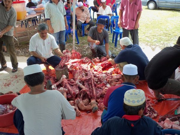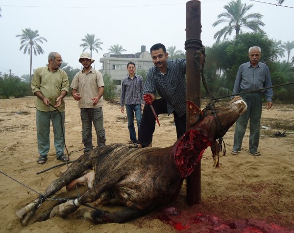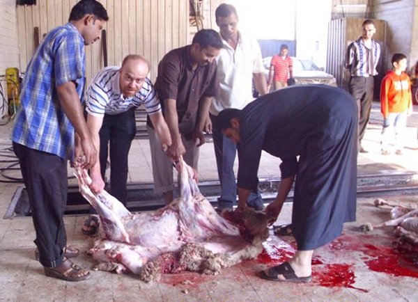 صور خلال نحر الأضاحي أول أيام عيد الأضحى المبارك