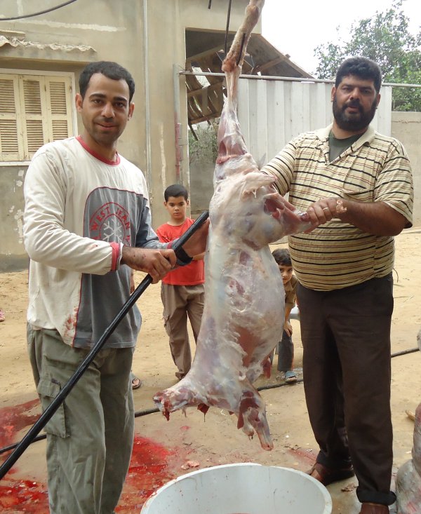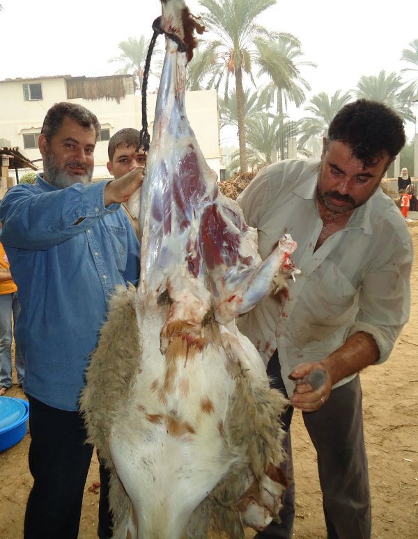 خروف الأستاذ عماد سعيد أثناء سلخه