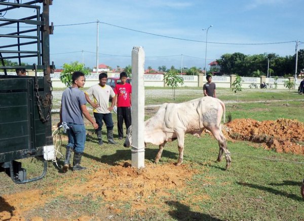 الحاج عبدالمجيد قاسم أثناء ربط الأضحية