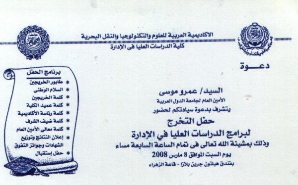 تحت رعاية السيد عمرو موسى الامين العام لجامعة الدول العربية