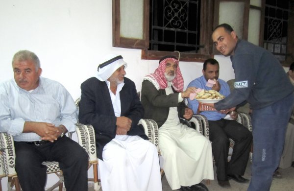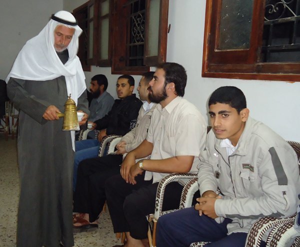 الحاج عبدالمجيد قاسم محمد قاسم أثناء تقديم القهوة العربية
