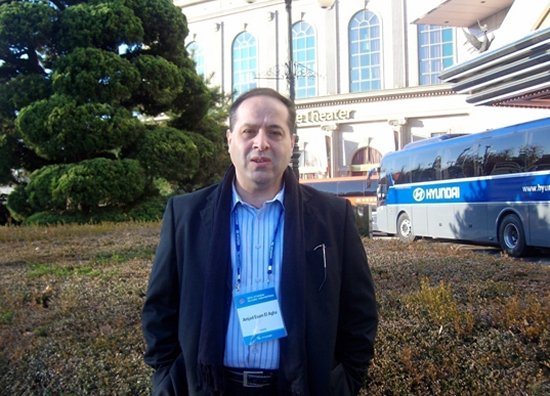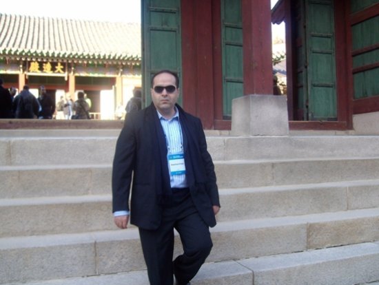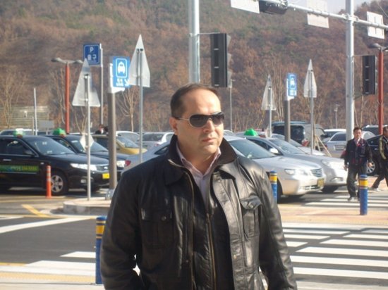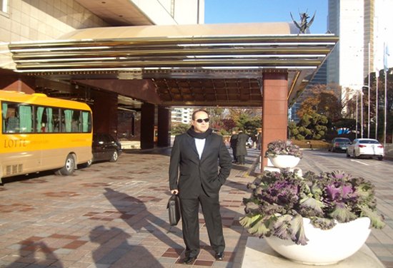 السيد أمجد عصام الأغا أمام الفندق الذي نزل فيه الوفد في سيئول