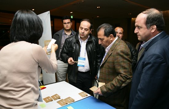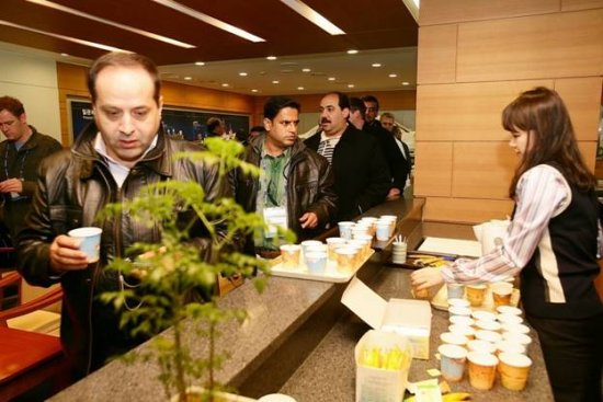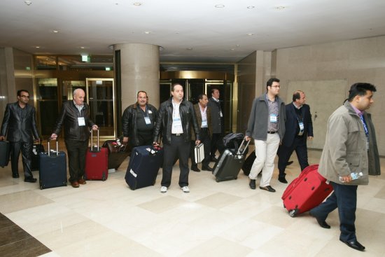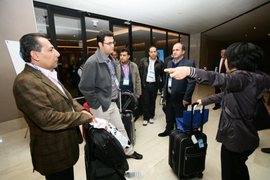 أثناء إستلام غرف الفندق و يظهر في الصورة السيد أمجد و الوفد الإيراني