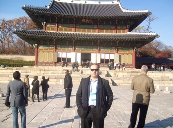 السيد أبو يزن أمام أحد المعابد الكوريه الشهيرة