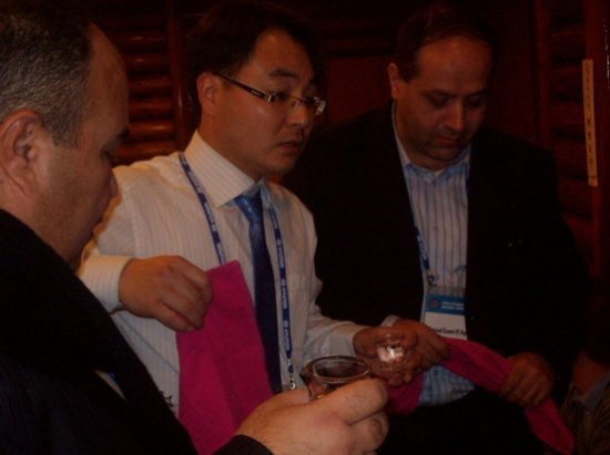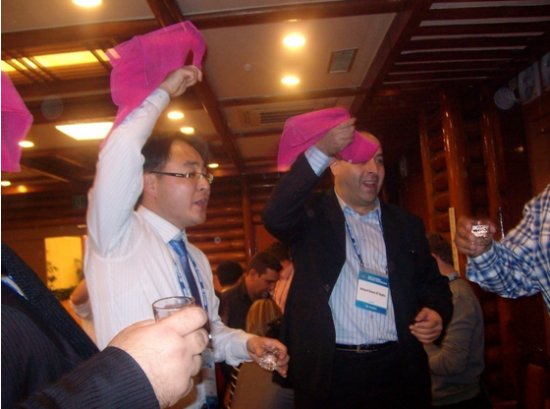 السيد أمجد الأغا و السيد دنيال لي و ذالك أثناء اداء الدبكة الفلسطينية و الكورية