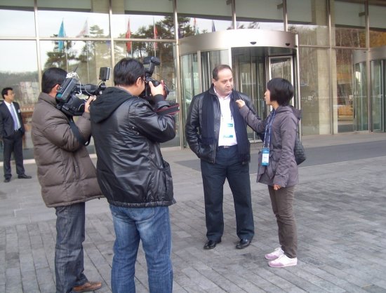 السيد أمجد عصام الأغا في لقاء مع إحدى القنوات التلفزيونية الكورية
