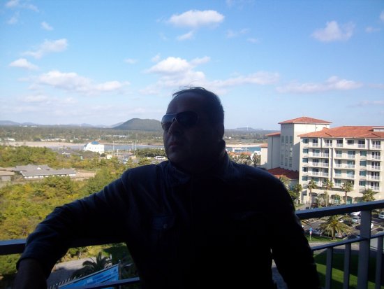 السيد أمجد الأغا من على إحدى شرف الفندق في جزيرة ((جوجو))