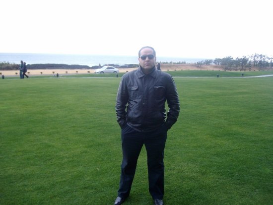 السيد أمجد عصام الأغا أمام الشاطىء في جزيرة جوجو على الحدود اليابانية