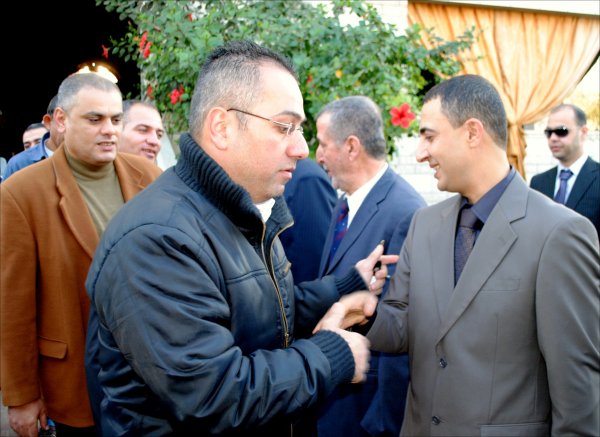 السادة: زياد مصطفى الفرا، العريس، الحاج عبدالحي الفرا متحدثاً،