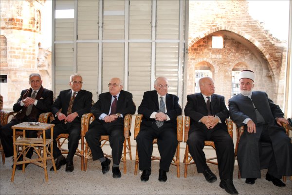 السادة : الحاج محمد سعيد الأغا، أ. إياد سعيد الأغا، الشيخ ناجي عنتر الأغا، أ. أديب شكري الأغا