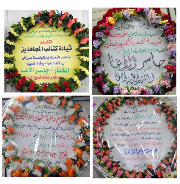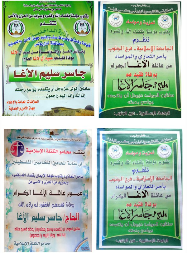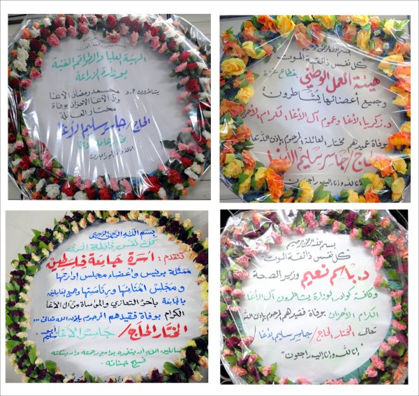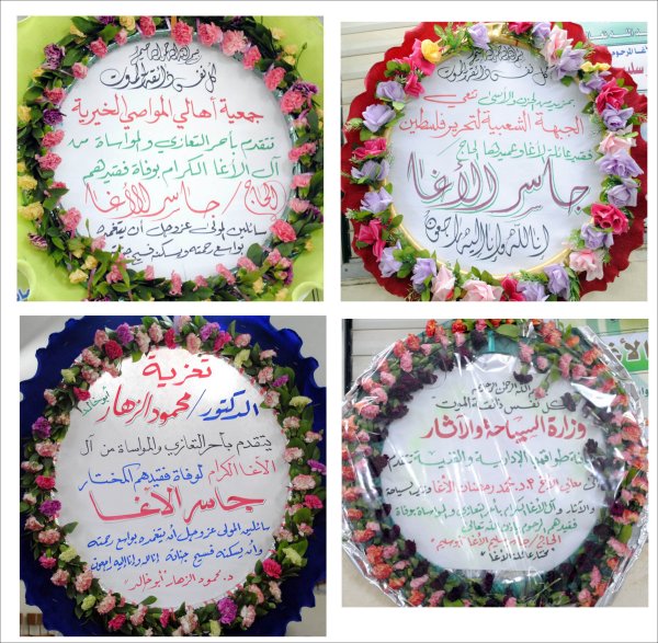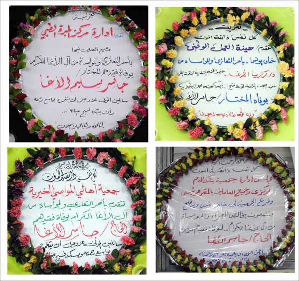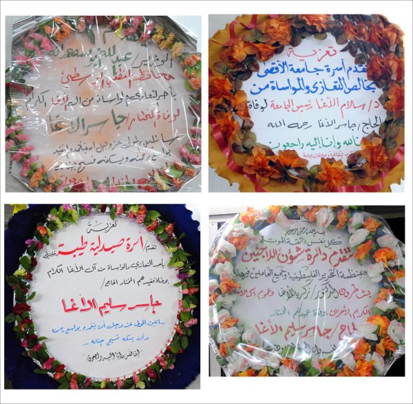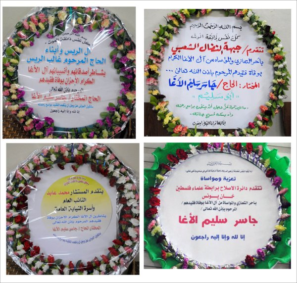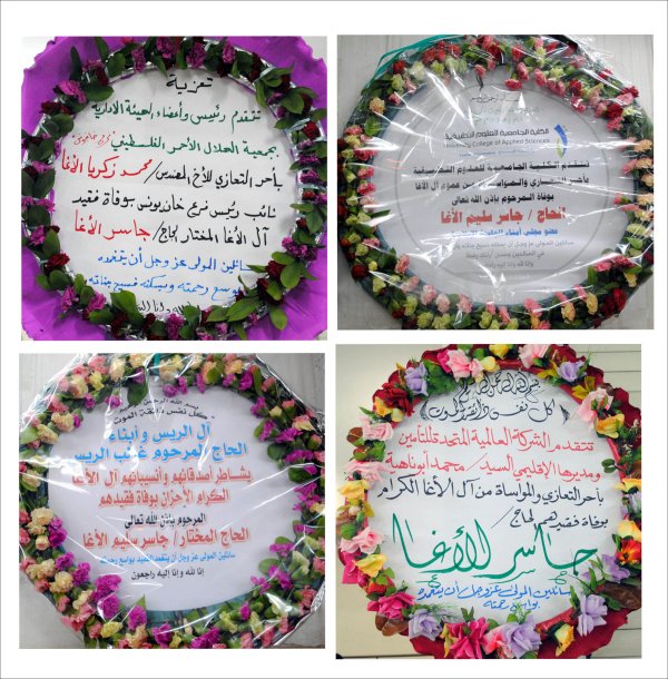 التعازي التي نُشرت في الصحف المحلية، وأكاليل التعازي والمواساة |