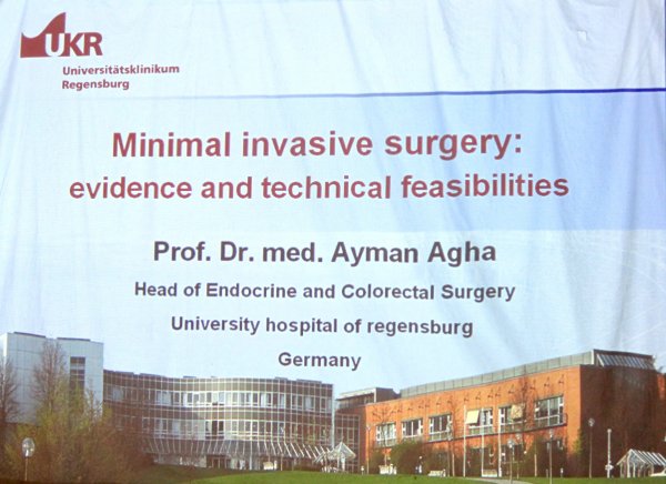 ضمن الفعاليات الطبية للبروفيسور أيمن الأغا، ألقي البروفيسور الأغا محاضرة طبية عن جراحة المناظير الباطنية في قاعة السـلام بمدينة غزة، وتأتي هذه الأمسية العلمية بناءاً علي دعوة نظمت لها جمعية الجراحين الفلسطينين في قطاع غزة وذلك بالتعاون مع تجمع الأطباء الفلسطينين في أوروبا PalMed وأعقب المحاضرة نقاش مطول وموضوعي تضمن كيفية الرقي بهذه الجراحات في القطاع كما تطرق الحاضرون إلي الرؤية المستقبلية لتدريب طواقم طبية في هذا المجال، ومن جانب أخر فقد قام البروفيسور أيمن بإجراء عمليات جراحية هي الأولى من نوعها في قطاع غزة، فقد قام بإجراء عمليتين جراحيتين تتعلقان بالأمراض الباطنية وسرطان المستقيم بمجمع ناصر الطبي ومستشفى غزة الأوروبي، وقد عبر الجميع عن شكرهم وإمتنانهم للبروفيسور أيمن علي المحاضرة القيمة التي قام بإلقائها.