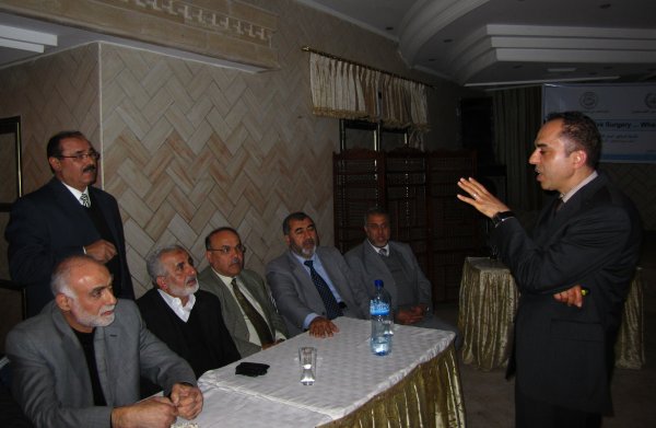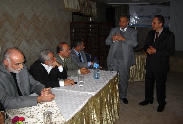 د. عماد الحوت (مسئول قسم الجراحة بمستشفى ناصر الطبي) في الوسط