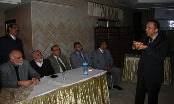 د. ناصر أبوشعبان أثناء شرح وضع المستشفيات في قطاع غزة
