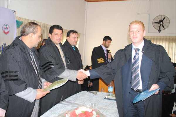 أثناء التكريم وإستلام شهادة إجازة المحاماة