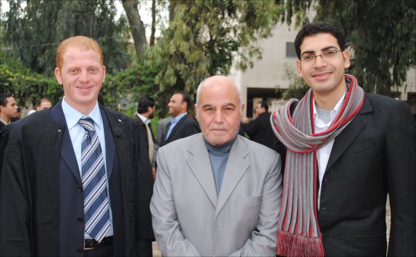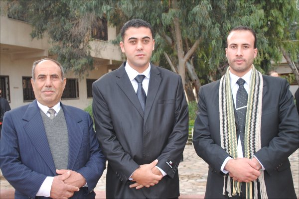 السادة: حمد حافظ شراب، المحامي سامر سعد الأغا وأستاذه المحامي حافظ حمد شراب،