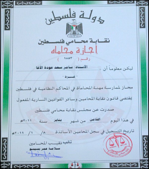 المحامي سامر سعد الأغا، نائب نقيب المحامين سلامة بسيسو، المحامي الأمير خالد