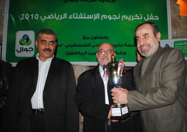 قاعة المتحف- بحر السودانية- غزة- الأربعاء الموافق 19-01-2011، كرمت رابطة الصـــحفيين الرياضيين ومؤسسة عطــاء اليوم كوكبة من الرياضيين الفائزين في استفتائها السنوي لعام 2010 بحضور م. يونس أبو سمرة مدير شركة جوال في غزة ووليد أيــــوب نائب رئيس اللجنة الاولمبية الفلسطينية ومحمود النيرب مدير مؤسسة عطاء وحسين عليان رئيس رابطة الصحفيين .والقي زكريا مهدي صــاحب الرأس الذهبيــة كلمـة المكرمـين وعبر عن شكره وتقديره لكل من ســاهم في تنظيم هذه الاحتــــفال وخاصـة رابطة الصـحفيين الرياضيين ومؤسسة عطــاء وشكر مهدي شكره جوال على رعايتها للحفل . واستذكر الزمن القديم زمن السبعينيات الذي تميز بالوفـــاء والانتماء والإخلاص , وان الشباب الفلسطيني بعد النكبة إنهم عازمين على علو راية الرياضة واستطـــاعت فعل ذلك .وتمنى مـهدي أن ترجع الرياضة كما في السابق وان تكون في شقين الوطن في الضفة الغربيــة غزة بشكل كلى وان تبتعد الرياضة عن السياسية . ووجه مهدي بحديثه إلى الرياضيين المعنيين , ورأس الهرم الرياضي والمؤسسات الرياضية إن يتقوا الله في فلسطين وان يعطوا الشباب حقهم لي يصلوا إلى مبتغاهم ومبتغانا جميعا , واختتم قوله لا بارك الله في رياضة بدون أخلاق، وكان من ضمن المُكرمين مجموعة من أبناء مدينة خان يونس ، وهم: