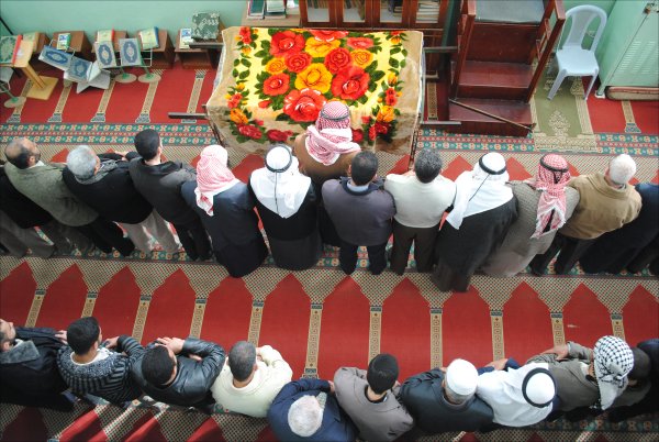أثناء الصلاة على جثمان الفقيدة- مسجد عبدالله عزام - السطر الغربي- خان يونس