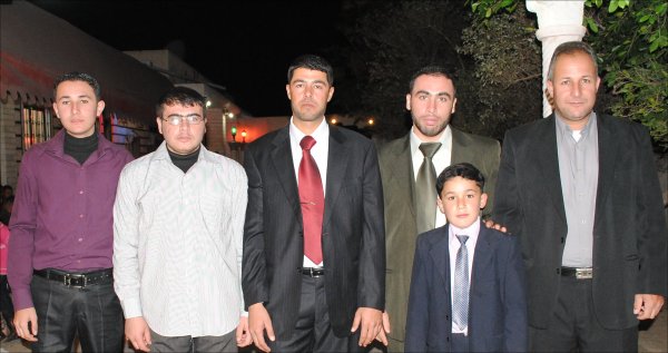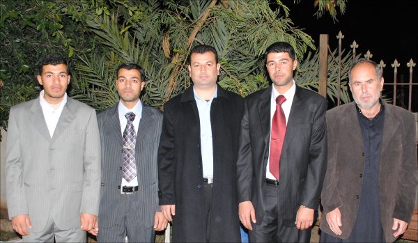 السادة: عمار فؤاد الأغا، حمدي(شقيق العروس)، كرم عمار الأغا، العريس،