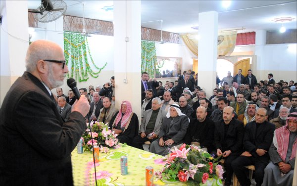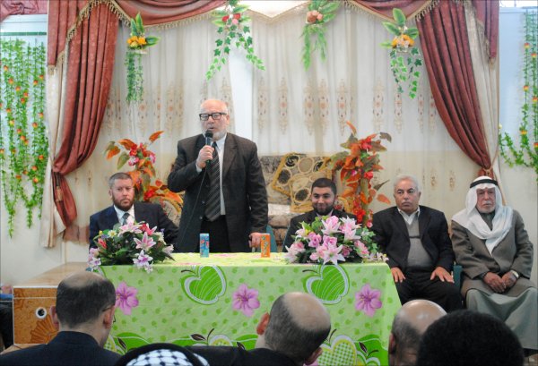 العريس، أ. عمر عودة الأغا متحدثاً، والد العروس