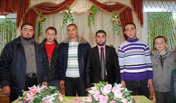 السادة: يسري(عم العروس)، فراس يسري الأغا، العريس، والد العروس، خالد(شقيق العروس)