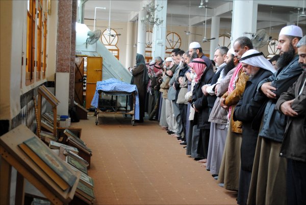 أثناء الصلاة على جثمان الفقيدة- المسجد الكبير- خان يونس