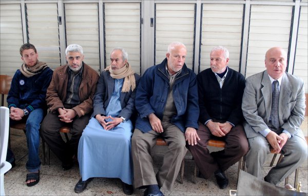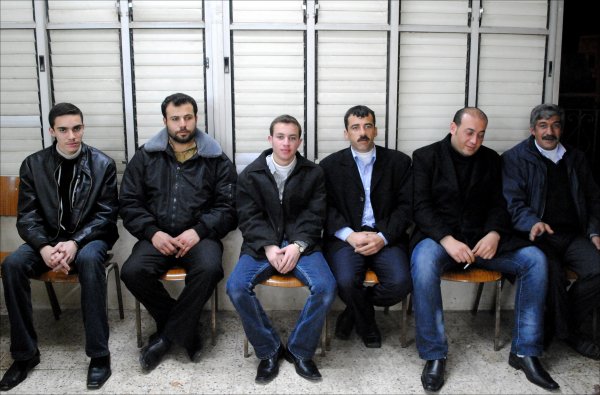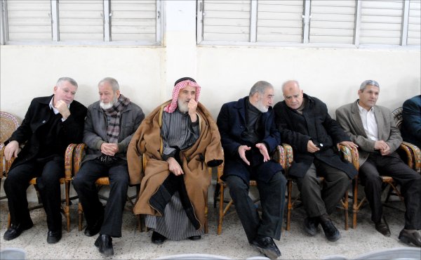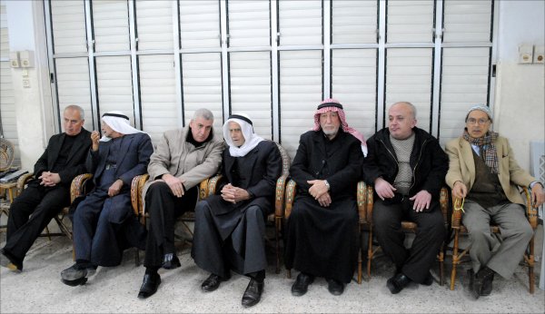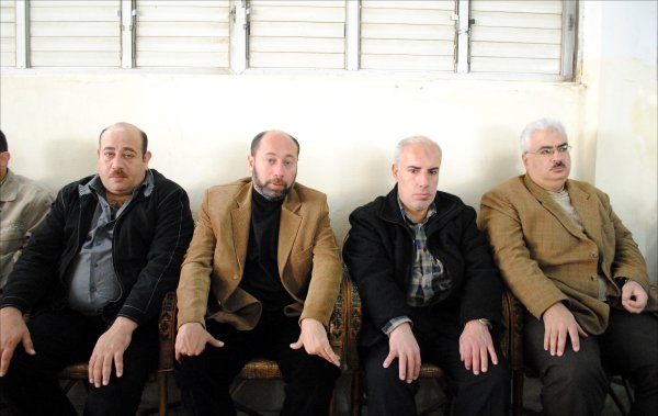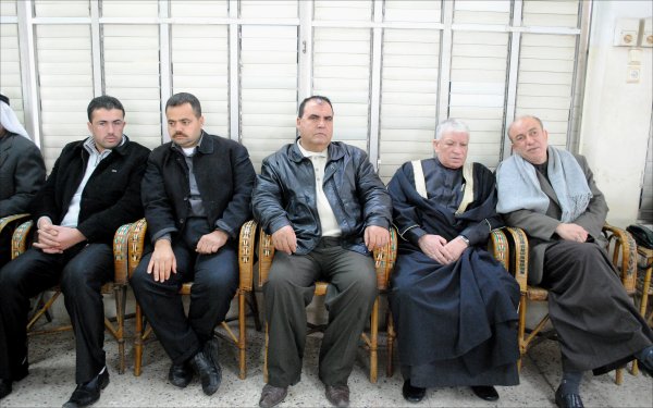 السادة: الحاج تيسير شراب، الحاج محمد طاهر الأغا، العم وديع الأغا، جمعة نوفل،