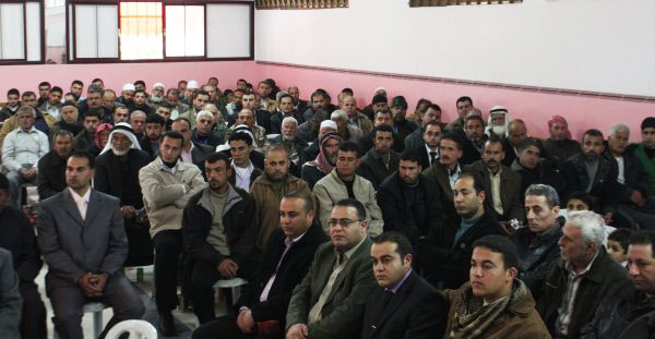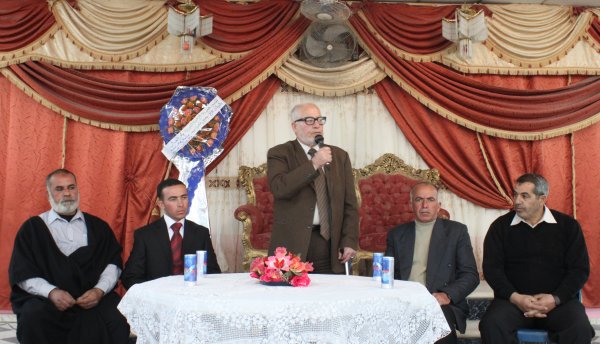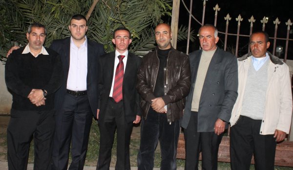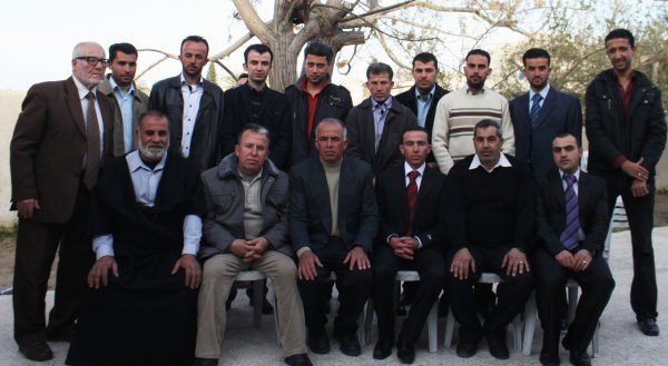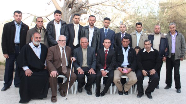 السادة: فيصل حسن الأغا، والد العريس، ابوشروق شهوان، العريس، ..، والد العروس