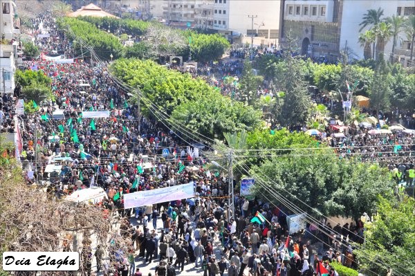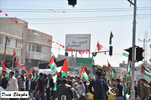 ساحة الجندي المجهول- غزة- الثلاثاء الموافق 15-03-2011 بهتاف واحد: ' لا للانقسام...فلسطين وبس'، وبعــلم واحد هو' العــلم الفلسطيني '، خرجت مسيرة جماهيرية حاشدة في غزة تلبية لدعوة الحملة الوطنية الشبابية لإنهاء الانقسام- 'شباب 15 آذار'، تــحت شعار: 'لا للانقسام'. في ساحة الجندي المجهول ، كان تجمّع المشاركين، الذين اخترقوا منطقة الجامعات ومنطقة السرايا وصولا إلــى ساحة الجندي المجهول، وفي نفس المكان اعتصم المشاركون الذين يمثلون كافة الفصائل الوطنية، وسط ترديد الهتافات الداعية لإنهاء حالة الانقسام، ورفع اليافطات التي كتب عليها عبارات وطنية، تؤكد جميعها ضرورة تعزيز الوحدة الوطنية. وقال أحد أفراد مجموعة