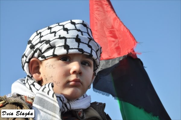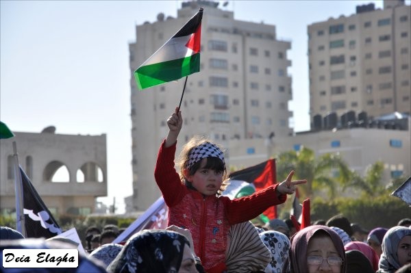 طفلة ترفع العلم الفلسطيني وتشارك في هذا اليوم