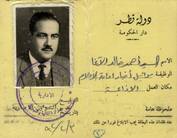 بطاقة عمله في الاذاعة القطرية.