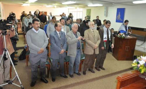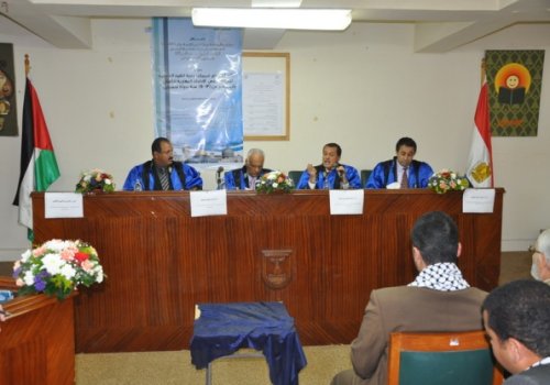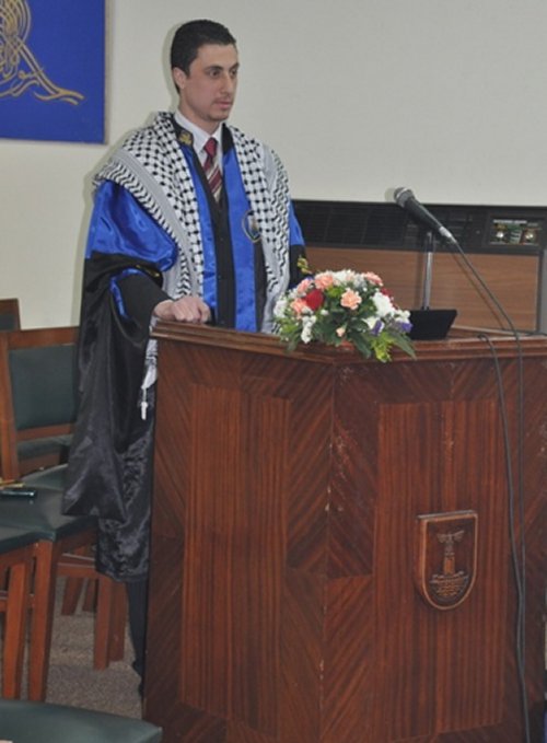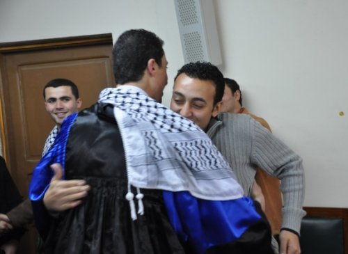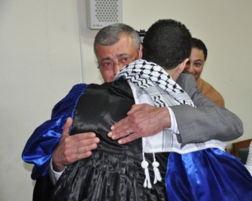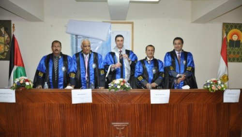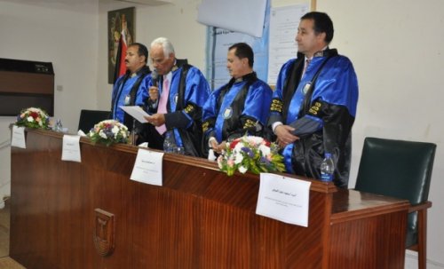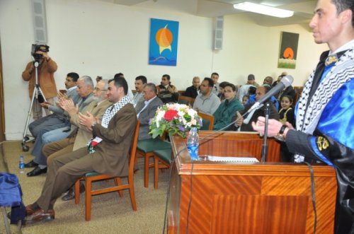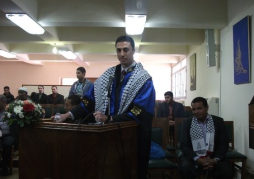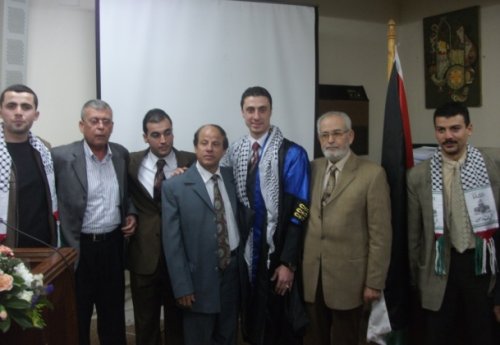 أثناء منح درجة الماجستير للباحث سهيل محمد طاهر الأغا